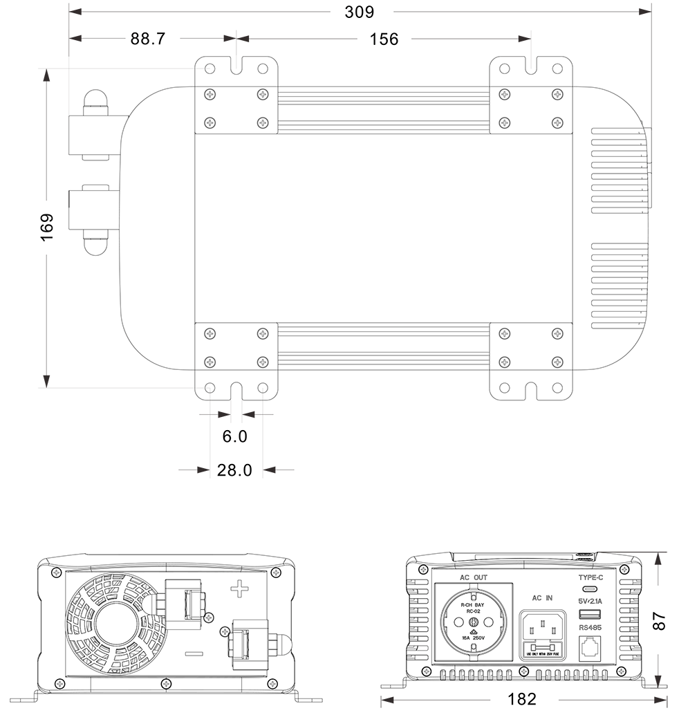 机械图纸:(309x182x87 mm)