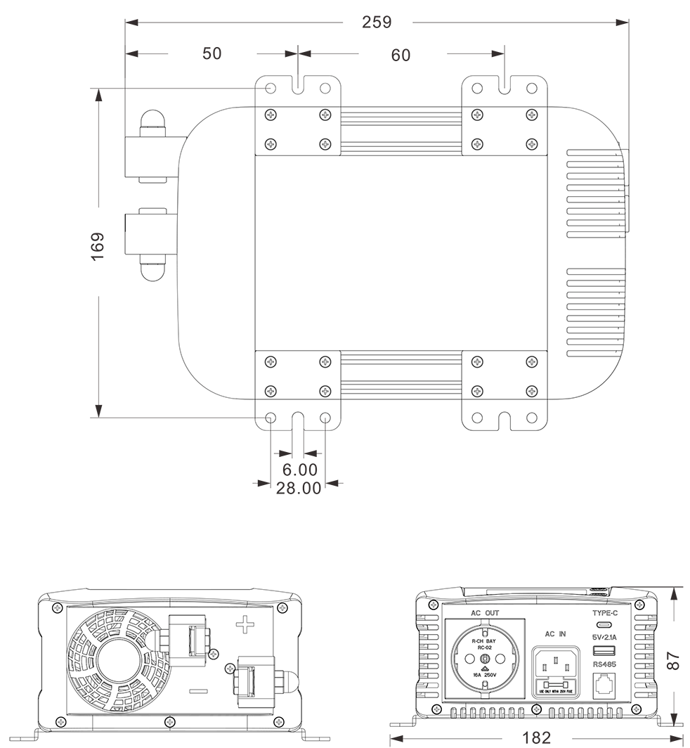 机械图纸:(259x182x87mm)